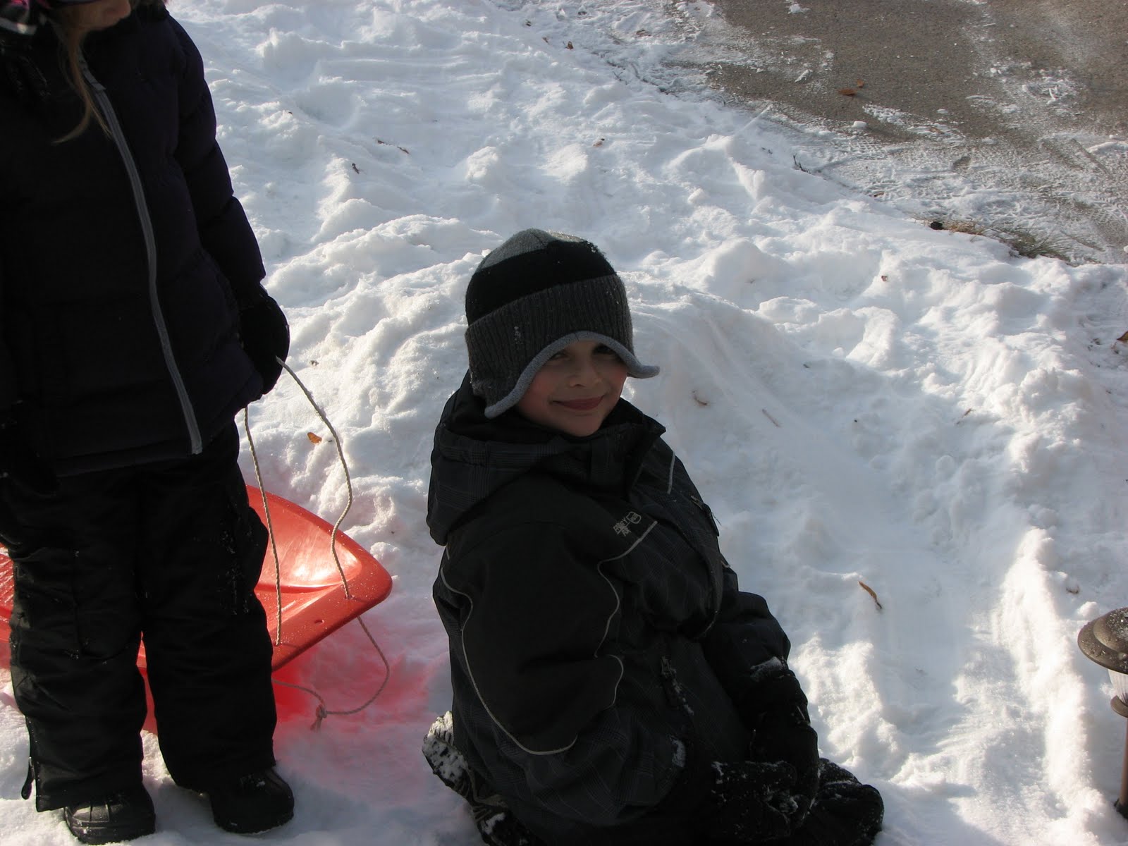 This picture has quite a story behind it. Although none of it was caught on camera. Christian went down the hill on the innertube, and at the bottom he crashed into this kid and knocked him down like a bowling pin. This was pre-impact